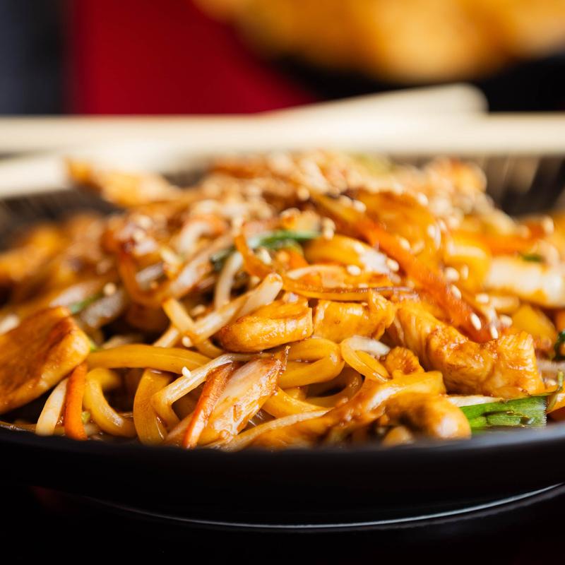 Wok-fried chicken, fresh broccoli, mushrooms, and zucchini tossed in a light sesame sauce
